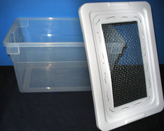 un récipient de plastique avec un couvercle grillagé